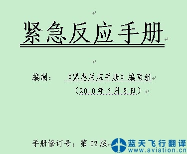 近日,承接老客戶航空公司(某國有大型航空公司)的《緊急反應手冊》(Emergency Response Manual)(ERM)中翻英翻譯任務,公司積極組織譯員,調(diào)取相應資料庫,保證質(zhì)量,爭取客戶滿意。