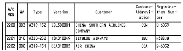 機(jī)清單(AIRPLANE ALLOCATION LIST),對(duì)使用者非常有用,通過(guò)查閱飛機(jī)的生產(chǎn)序號(hào)、型