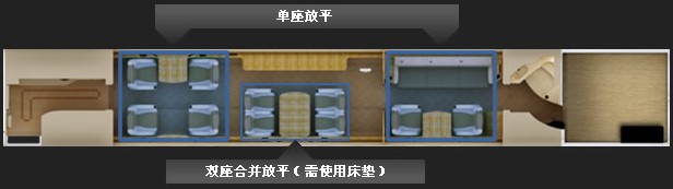 3個臥室區(qū)域,單個座位可放平成全臥式躺椅