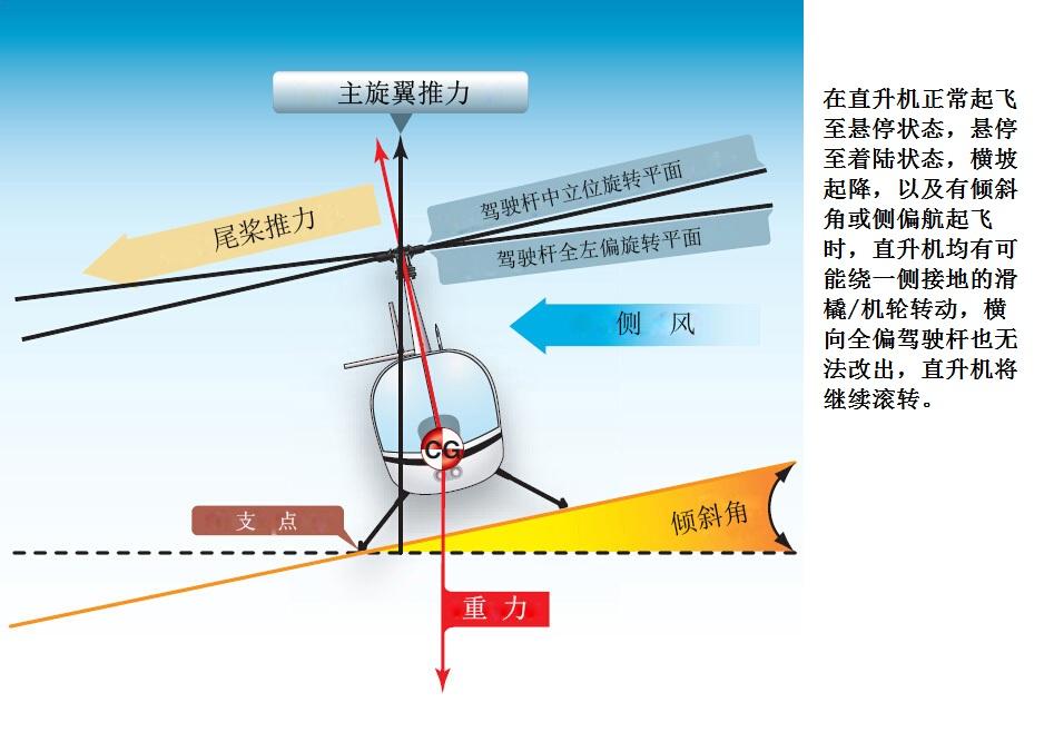 To view this page ensure that Adobe Flash Player version 9.0.124 or greater is installed. 4.3.2 相關(guān)研究一般來說,無論地面是否平整,直升機駕駛員均應(yīng)嫻熟操作。如果直升機在正常起飛著陸與斜坡起飛著陸的情況下均使用相同的傾斜角(直升機與水平面的夾角),或者滑橇/ 機輪位于地面時直升機出現(xiàn)漂移,那么該傾斜角或漂移會使直升機繞仍然接地的滑橇/機輪轉(zhuǎn)動。當這種情況發(fā)生時,相比懸停的直升機而言,橫向操縱駕駛桿的反應(yīng)速度會更加緩慢,且效果較差。如果允許滾轉(zhuǎn)速率繼續(xù)增大,那么傾斜角將達到臨界值,即使全量橫向操縱駕駛桿也不能將滾轉(zhuǎn)改出,直升機將發(fā)生側(cè)翻,引起重大事故。隨著滾轉(zhuǎn)速率增大, 仍有可能改出的角度越來越小。臨界滾轉(zhuǎn)角也相應(yīng)減小,臨界滾轉(zhuǎn)角在下列情況下會進一步減小:右側(cè)滑橇/機輪接地、 左側(cè)風、橫向重心靠右、主旋翼拉力幾乎等于直升機重量以及抵左腳蹬。 a)正常起飛和著陸如果在平整且堅硬的地面起飛和著陸,一側(cè)滑橇/機輪 位于地面,且升力約等于直升機總重,駕駛員應(yīng)謹慎操縱不要發(fā)生水平位移。駕駛員應(yīng)該平穩(wěn)操作并注意駕駛桿配平(利用配平裝置),從而保證俯仰或滾轉(zhuǎn)速率不會增加,尤其是滾轉(zhuǎn)率增加。如果傾斜角開始增加至約5-8°,同時全偏駕駛桿不能對角度進行修正時,駕駛員應(yīng)減小總距以消除不穩(wěn)定的滾轉(zhuǎn)狀態(tài)。否則傾斜角會達到臨界值,將造成直升機側(cè)翻。(參見圖4) ![]() 圖4 直升機右滑橇/機輪接地時的各種作用力示意圖 b)斜坡起飛和著陸在斜坡上進行起飛和著陸時,駕駛員應(yīng)遵循已公布的操 ![]() 圖 5 向上坡方向滾轉(zhuǎn)動作示意圖 如果直升機在斜坡上并向上坡方向滾轉(zhuǎn),修正時過快放下總距可能引起直升機快速向反方向滾轉(zhuǎn)。如果(著陸時) 上坡方向的滑橇/機輪撞地,會導(dǎo)致直升機上坡方向的滑橇/ 機輪彈起,并且慣性會造成直升機圍繞下坡方向接地點滾轉(zhuǎn)并翻轉(zhuǎn)至一側(cè)。駕駛員要避免突然增加總距使直升機離地, 因為這會產(chǎn)生一個很大而且突然的反方向滾轉(zhuǎn)力矩。這種運動可能是無法控制的。如果直升機在一側(cè)滑橇/機輪在地面的情況下形成滾轉(zhuǎn)速率,直升機就可能向一側(cè)翻轉(zhuǎn)。(參見圖 6) ![]() 圖 6 向下坡方向滾轉(zhuǎn)動作示意圖 |