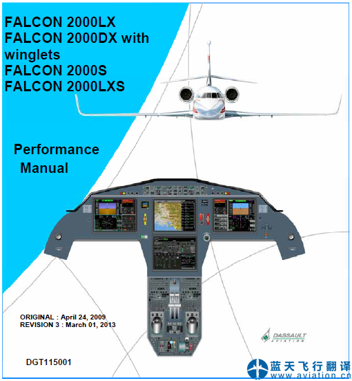 藍天飛行翻譯公司承接公務機公司達索2000LX性能手冊翻譯任務 F2000LX Performance Manual Translation