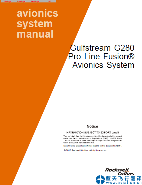 藍天飛行翻譯公司承接大型公務(wù)機公司的灣流G280 Pro Line Fusion 航空電子系統(tǒng)手冊翻譯任務(wù) G280 Pro Line Fusion Avionics System Manual Translation