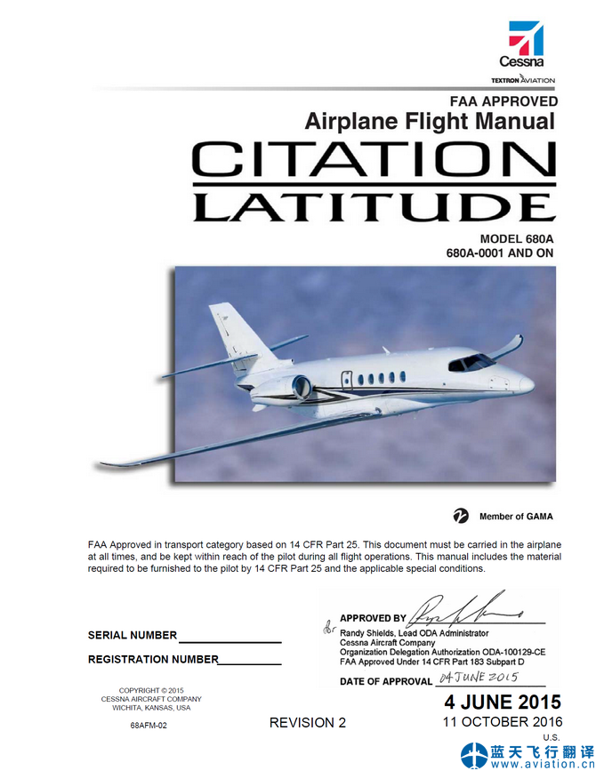賽斯納獎狀緯度680A尺寸