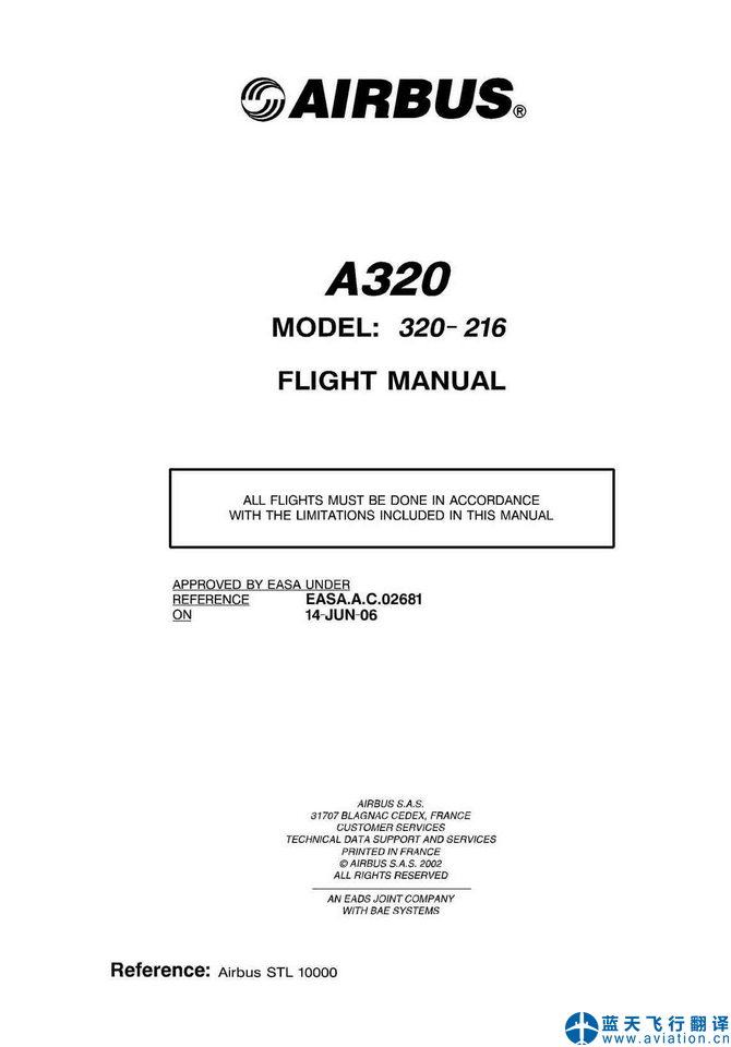 北京藍天飛行翻譯有限公司完成大型航空公司A320-216機型飛行機組操作手冊 FCOM,快速檢查單 QRH,飛機飛行手冊 AFM 翻譯任務 A320-216 FLIGHT CREW OPERATING MANUAL, QUICK REFERENCE HANDBOOK and AIRPLANE FLIGHT MANUAL translation