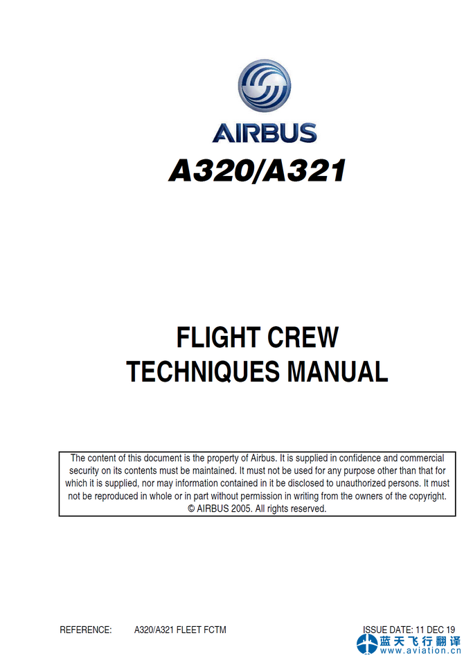 本次翻譯的A320/A321飛行手冊包含97架飛機、320-214、320-251N和321-253NX三個機型,手冊包含有A320/A321快速檢查單(QRH QUICK REFERENCE HANDBOOK),版本為2019年12月11日和A320/A321飛行機組技術(shù)手冊(FCTM FLIGHT CREW TECHNIQUES MANUAL),版本為2019年12月11日。