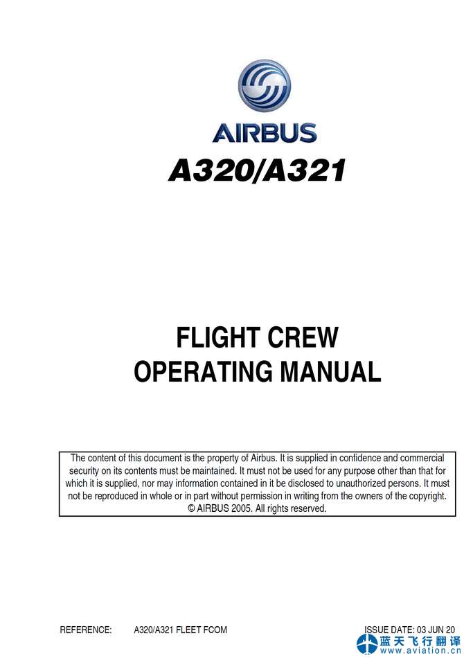 北京藍(lán)天飛行翻譯有限公司完成航空公司5架空客A320飛行機(jī)組操作手冊(cè)(FCOM FLIGHT CREW OPERATING MANUAL)、A320快速檢查單(QRH QUICK REFERENCE HANDBOOK)、A320飛機(jī)飛行手冊(cè)(AIRPLANE FLIGHT MANUAL)和A320飛行機(jī)組技術(shù)手冊(cè)(FLIGHT CREW TECHNIQUES MANUAL)翻譯任務(wù) 03 JUN 20 A320 FLIGHT CREW OPERATING MANUAL, QRH QUICK REFERENCE HANDBOOK, AIRPLANE FLIGHT MANUAL and FLIGHT CREW TECHNIQUES MANUAL Translation
