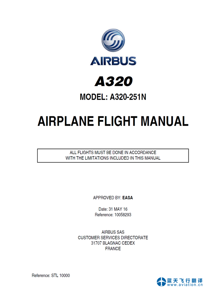 北京藍(lán)天飛行翻譯有限公司完成大型航空公司2020年11月18日版本空客A320全套飛行手冊翻譯任務(wù),包含空客A320飛行機組操作手冊(FCOM FLIGHT CREW OPERATING MANUAL)、A320快速檢查單(QRH QUICK REFERENCE HANDBOOK)、A320飛機飛行手冊(AIRPLANE FLIGHT MANUAL)和A320飛行機組技術(shù)手冊(FLIGHT CREW TECHNIQUES MANUAL)翻譯任務(wù) 26 OCT 20 A320 FLIGHT CREW OPERATING MANUAL, QRH QUICK REFERENCE HANDBOOK, AIRPLANE FLIGHT MANUAL and FLIGHT CREW TECHNIQUES MANUAL Translation