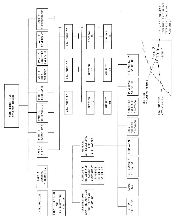 無(wú)損檢測(cè)手冊(cè)是機(jī)體、發(fā)動(dòng)機(jī)和部件制造廠編制的無(wú)損檢測(cè)程序,不僅包含主要的和輔助的結(jié)構(gòu),而且包括專(zhuān)利的部件的檢測(cè)程序,是機(jī)體、發(fā)動(dòng)機(jī)和部件制造廠在真實(shí)的構(gòu)件上和原位實(shí)際狀態(tài)下經(jīng)過(guò)驗(yàn)證可以實(shí)施的程序,每種機(jī)型均有相應(yīng)的無(wú)損檢測(cè)手冊(cè),制造廠家定期進(jìn)行更新和修正,在兩次定期進(jìn)行更新和修正之間通常發(fā)布一些臨時(shí)修正,在使用時(shí)要注意采用有效版本。