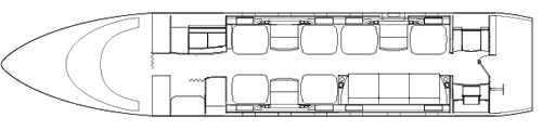 The addition of a side-facing divan, in place of the aft left-hand seats, offers yet another comfortable and practical alternative. The aft side-facing divan is certified for takeoff and landing for up to 3 passengers.