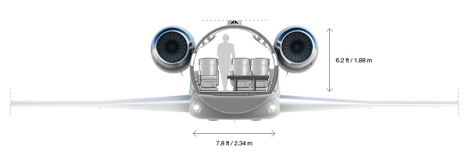 達(dá)索獵鷹2000S公務(wù)機機身寬度和客艙高度