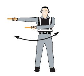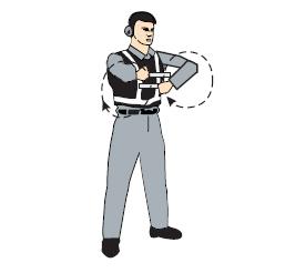 雙臂水平外伸,掌心朝下,向下招手,雙臂移動(dòng)速度表示上升率大小 向下移動(dòng)(下降高度) 一臂水平指向右側(cè), 另一臂反復(fù)向所指方向揮動(dòng),示意直升機(jī)應(yīng)向左移動(dòng)(轉(zhuǎn)向)向左移動(dòng)(轉(zhuǎn)向) 一臂水平指向左側(cè), 另一臂反復(fù)向所指方向揮動(dòng),示意直升機(jī)應(yīng)向右移動(dòng)(轉(zhuǎn)向)向右移動(dòng)(轉(zhuǎn)向)