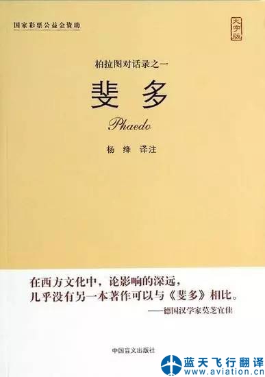 “我按照自己翻譯的習(xí)慣,一句句死盯著原文譯,力求通達(dá)流暢,盡量避免哲學(xué)術(shù)語,努力把這篇盛稱語言生動如戲劇的對話譯成戲劇似的對話。柏拉圖的這篇絕妙好辭,我譯前已讀過多遍,蘇格拉底就義前的從容不懼,同門徒侃侃討論生死問題的情景,深深打動了我,他那靈魂不滅的信念,對真、善、美、公正等道德觀念的追求,給我以孤單單生活下去的勇氣。” 2000年,中譯本《斐多》出版,被稱為“迄今為止最感人至深的哲學(xué)譯本”。 楊絳先生談翻譯