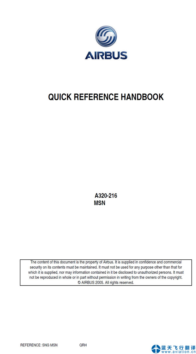 北京藍天飛行翻譯有限公司完成大型航空公司A320-216機型飛行機組操作手冊 FCOM,快速檢查單 QRH,飛機飛行手冊 AFM 翻譯任務 A320-216 FLIGHT CREW OPERATING MANUAL, QUICK REFERENCE HANDBOOK and AIRPLANE FLIGHT MANUAL translation