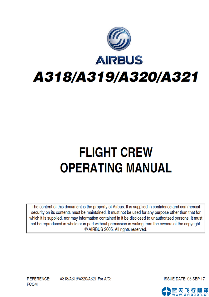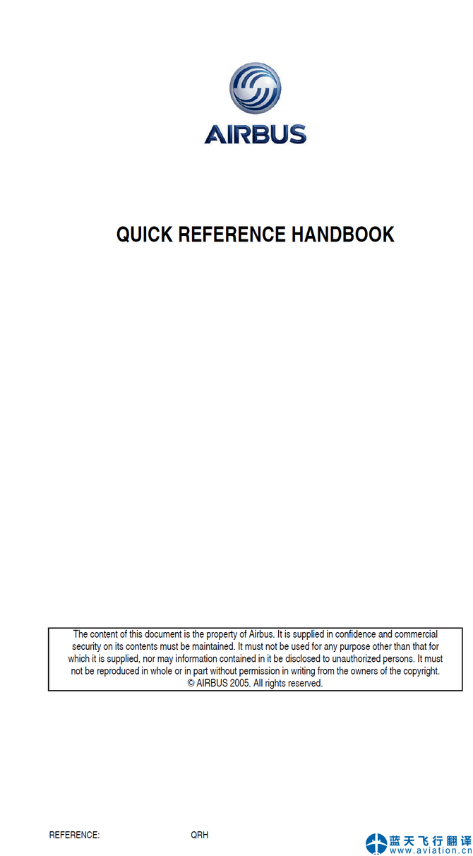 北京藍天飛行翻譯公司完成航空公司2017年9月5日版本空客A320機組操作手冊和快速檢查單翻譯任務(wù) A320 FLIGHT CREW OPERATING MANUAL and QUICK REFERENCE HANDBOOK Translation