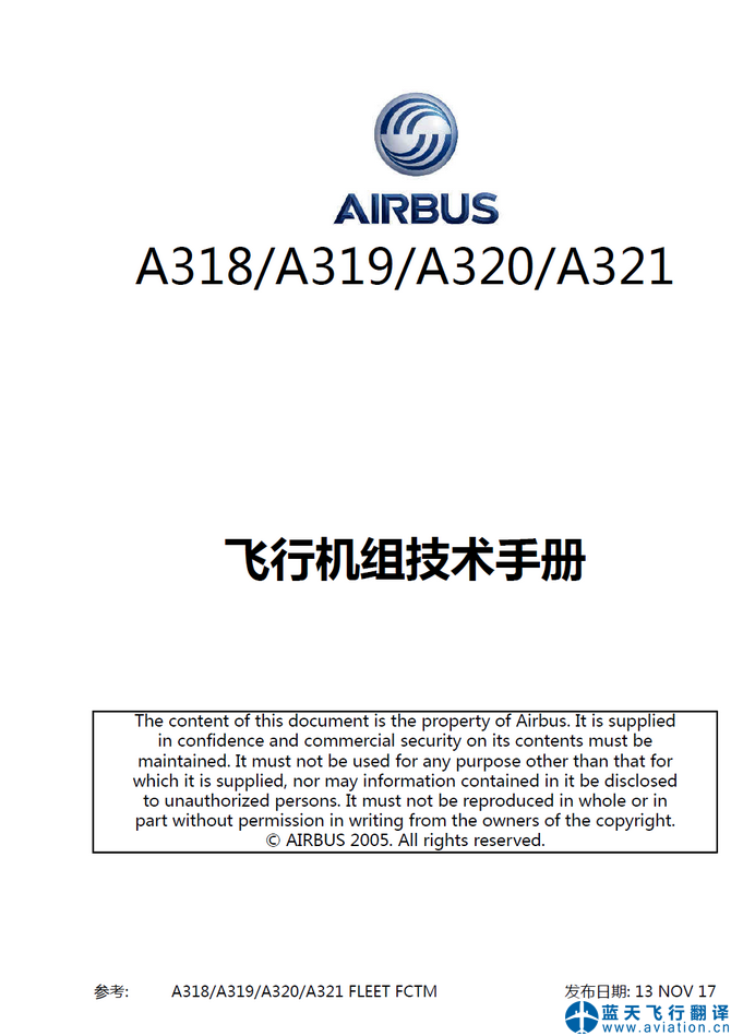 北京藍(lán)天飛行翻譯有限公司完成航空公司2017年11月13日版本空客A320飛行機(jī)組技術(shù)手冊(cè)翻譯任務(wù) Airbus A318/A319/A320/A321 FLIGHT CREW TECHNIQUES MANUAL Translation