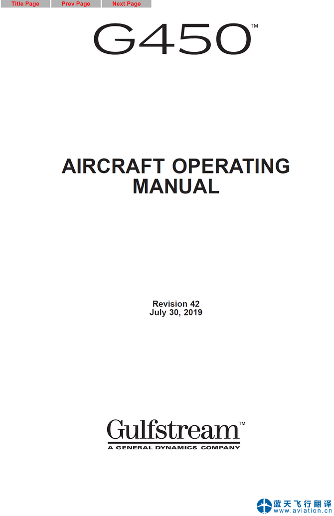 北京藍天飛行翻譯公司完成大型公務(wù)機公司的2019年7月30日,第42版灣流G450全套飛行手冊翻譯任務(wù) G450 Flight Manual Translation